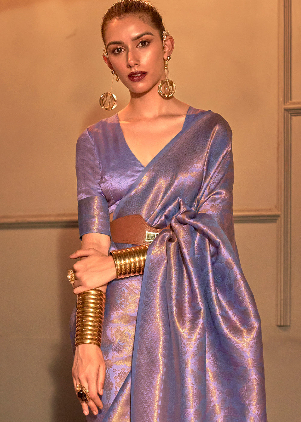 Iris Purple Two Tone Handloom Weaving Kanjivaram Silk Saree : Top Pick