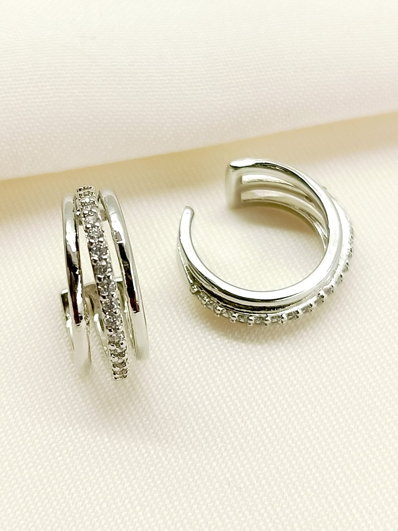 Expertly Crafted From Silver Plated Brass Metal, This White American Diamond Earcuff Exude Elegance And Sophistication. The Stunning American Diamonds Add A Touch Of Luxury To Any Outfit, Making Them The Perfect Accessory For Any Occasion. Upgrade Your Jewelry Collection With These Timeless And Versatile Earrings.