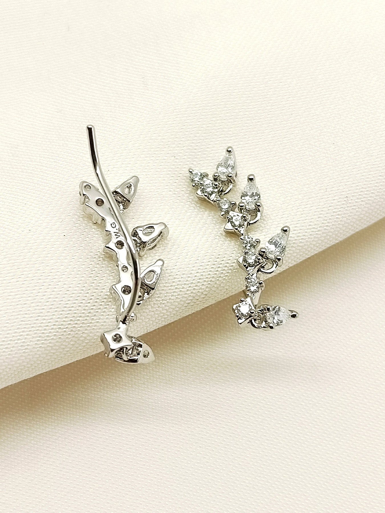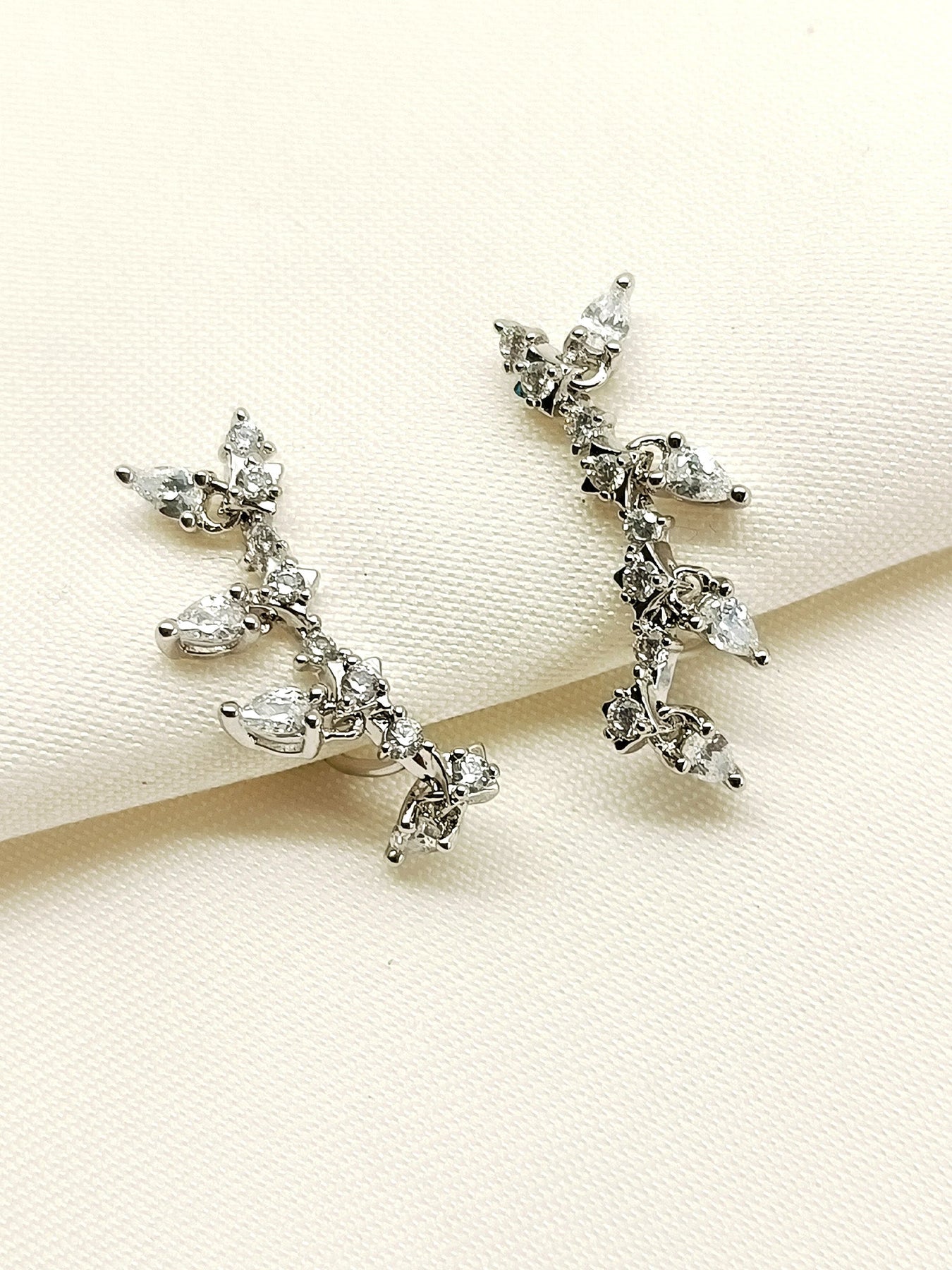 Expertly Crafted From Silver Plated Brass Metal, This White American Diamond Earcuff Exude Elegance And Sophistication. The Stunning American Diamonds Add A Touch Of Luxury To Any Outfit, Making Them The Perfect Accessory For Any Occasion. Upgrade Your Jewelry Collection With These Timeless And Versatile Earrings.