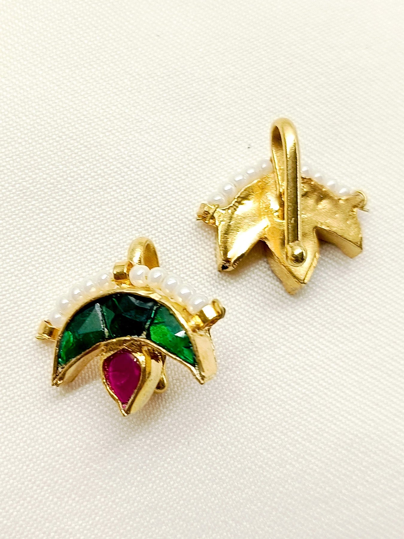 Madhat Medium Size Ruby Gold Plated Kundan Ear Cuff [ Price is for Pair ] - qivii