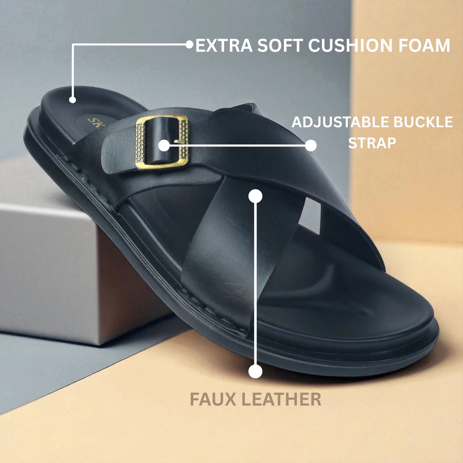 SKEROO 6408 Men's BLACK Chappal/Flip flop/Slipper Extra Soft Chappal Slipper Ethnic Wear Leather With Adjustable Buckle Strap Navratri Fashion Footwear.