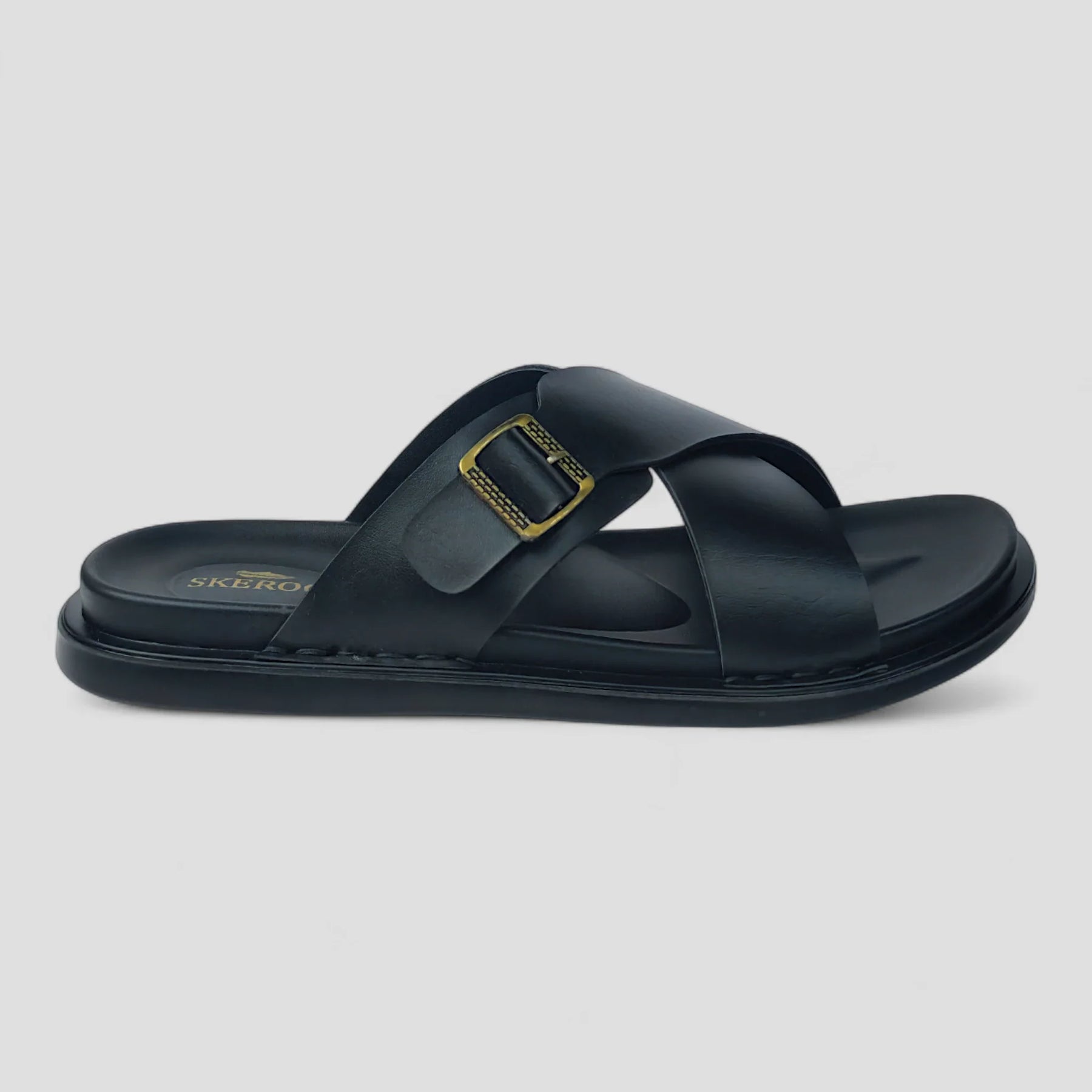SKEROO 6408 Men's BLACK Chappal/Flip flop/Slipper Extra Soft Chappal Slipper Ethnic Wear Leather With Adjustable Buckle Strap Navratri Fashion Footwear. - qivii