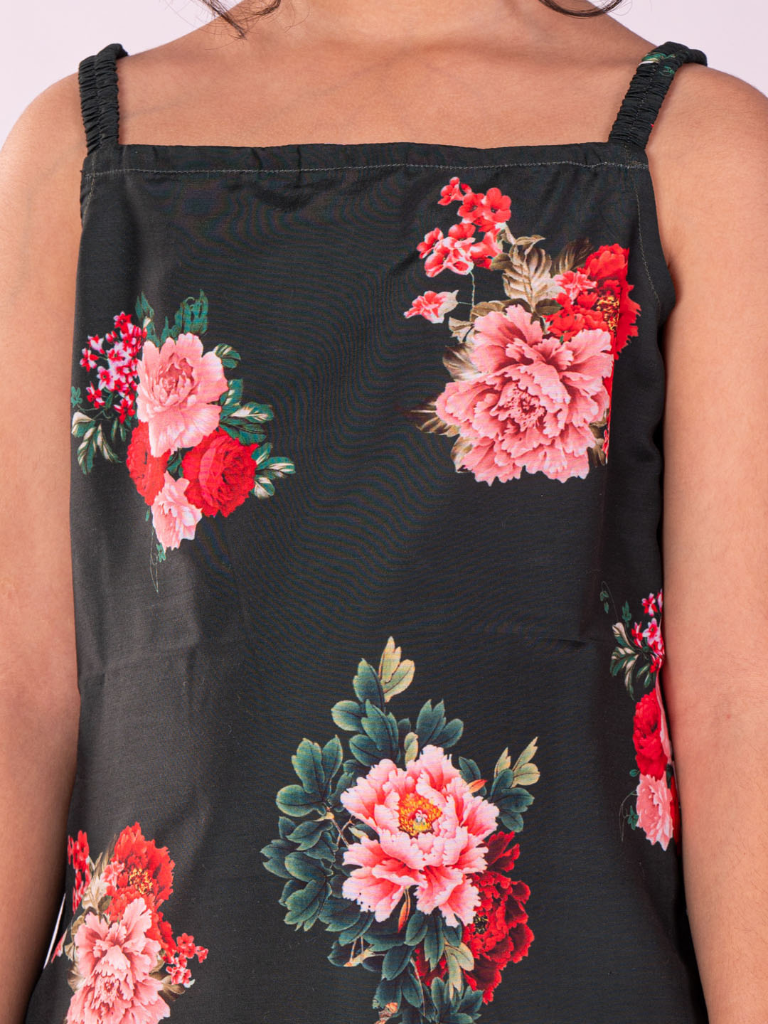 Bright Floral Digital Printed Sleeveless Kurta With Tulip Pants.