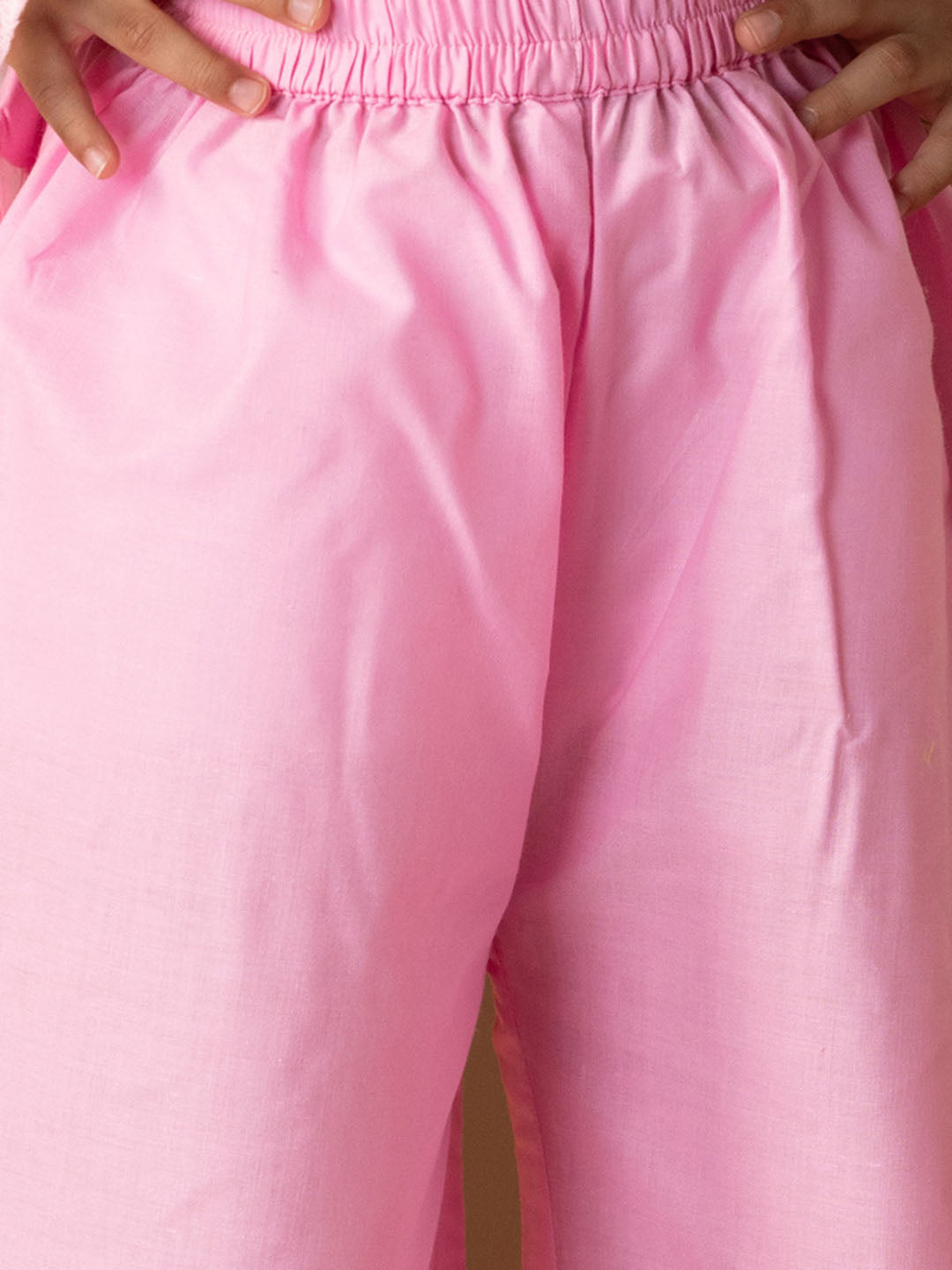Cotton Allover Printed kurta sleeveless,round neck,tye up closure,fit and flare and lace detailing comes with solid plazo with elasticated wasitband,perfect for special occasions and celebrations.