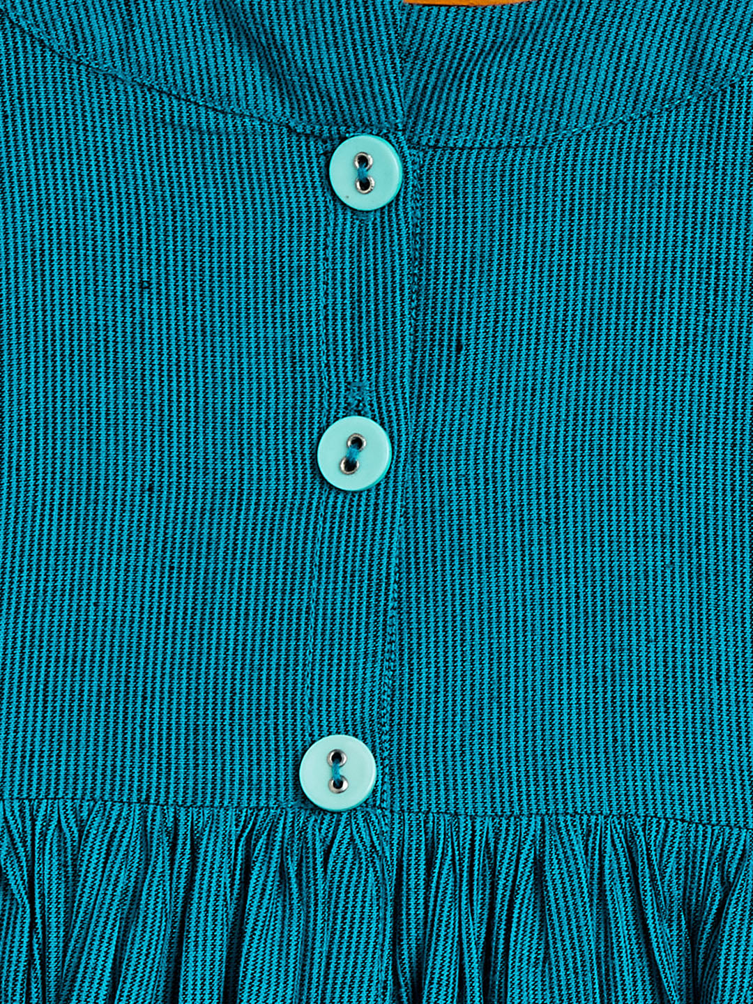 Aqua color striped, handloom front button, sleevesless, round neck kurta,