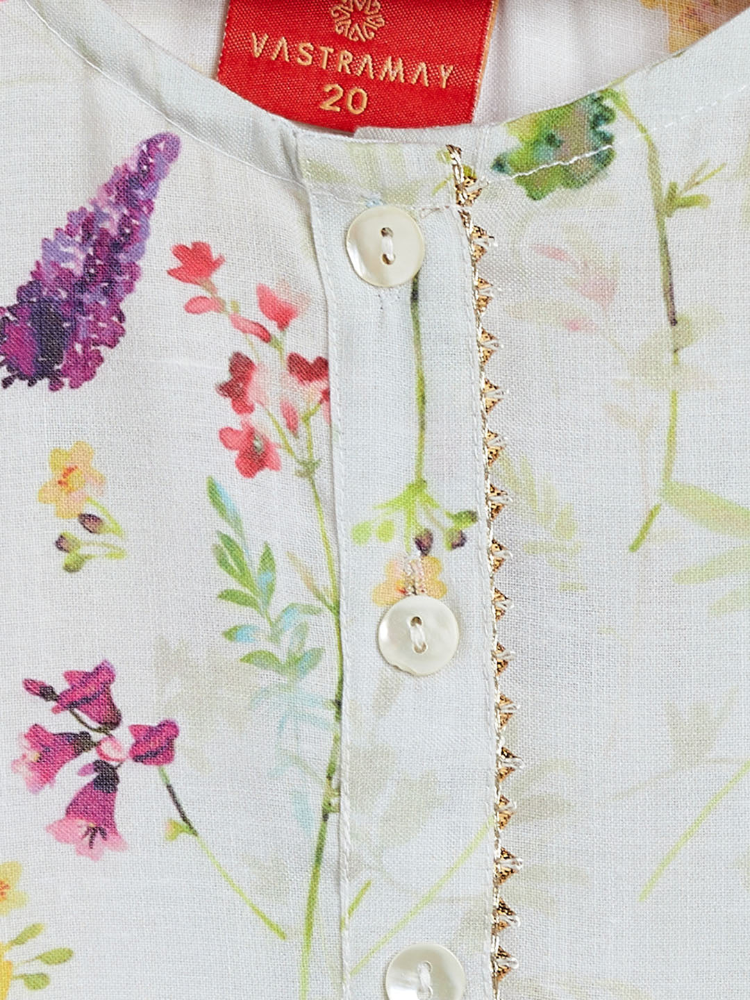 VASTRAMAY SISHU Girl's Multicolor-Base Cream Kurta pant Set