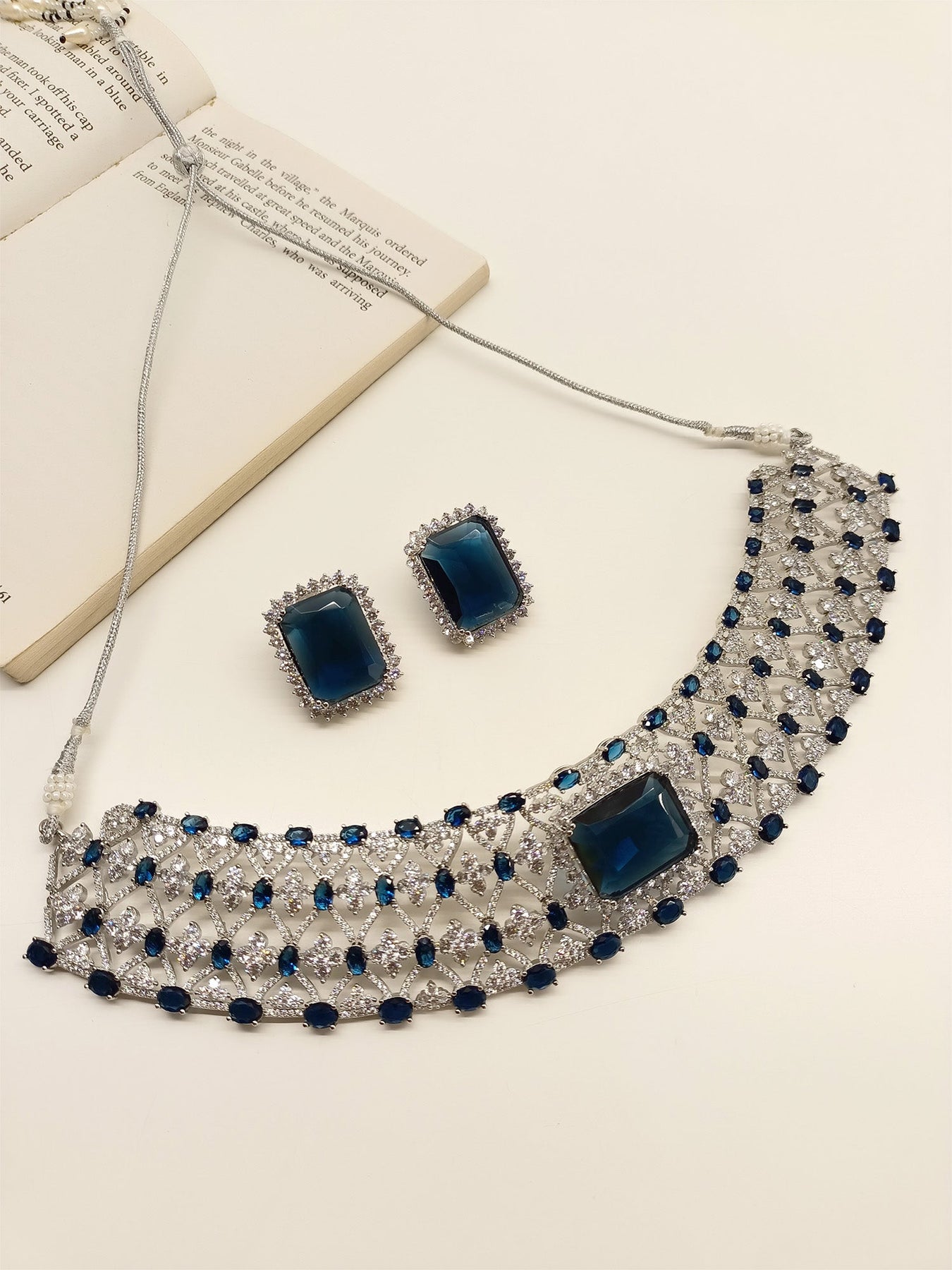 Embrace the charm and beauty of the Amaira Navy Blue American Diamond Necklace Set and let it inspire confidence and grace in every step you take. Transform every occasion into a memorable one with this timeless accessory.