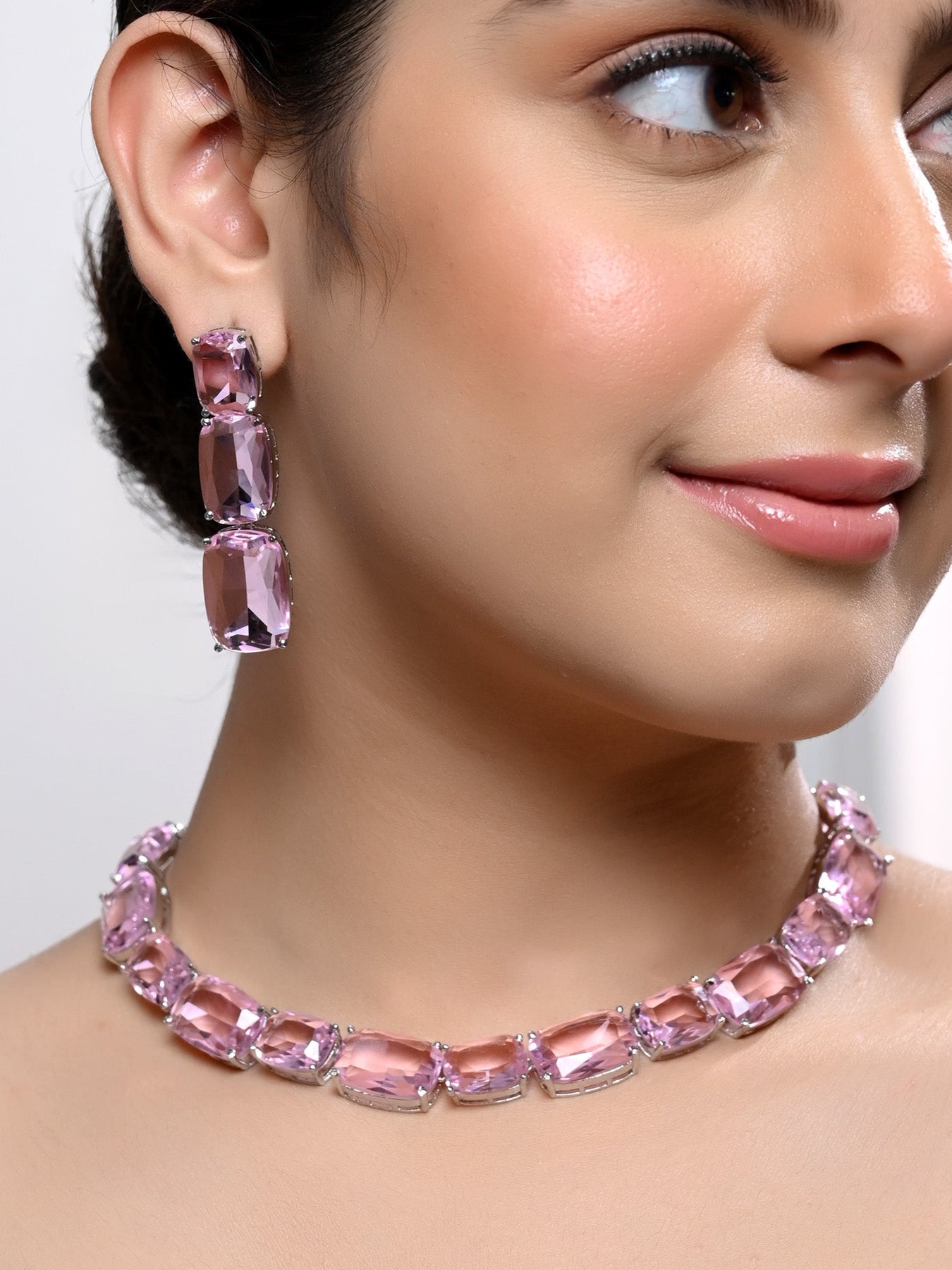 This Swarovski Stone Set Is The Perfect Addition To Your Wardrobe. Crafted With Elegant Silver Plated Brass Metal, This Necklace Set Is Sure To Sparkle Any Outfit.