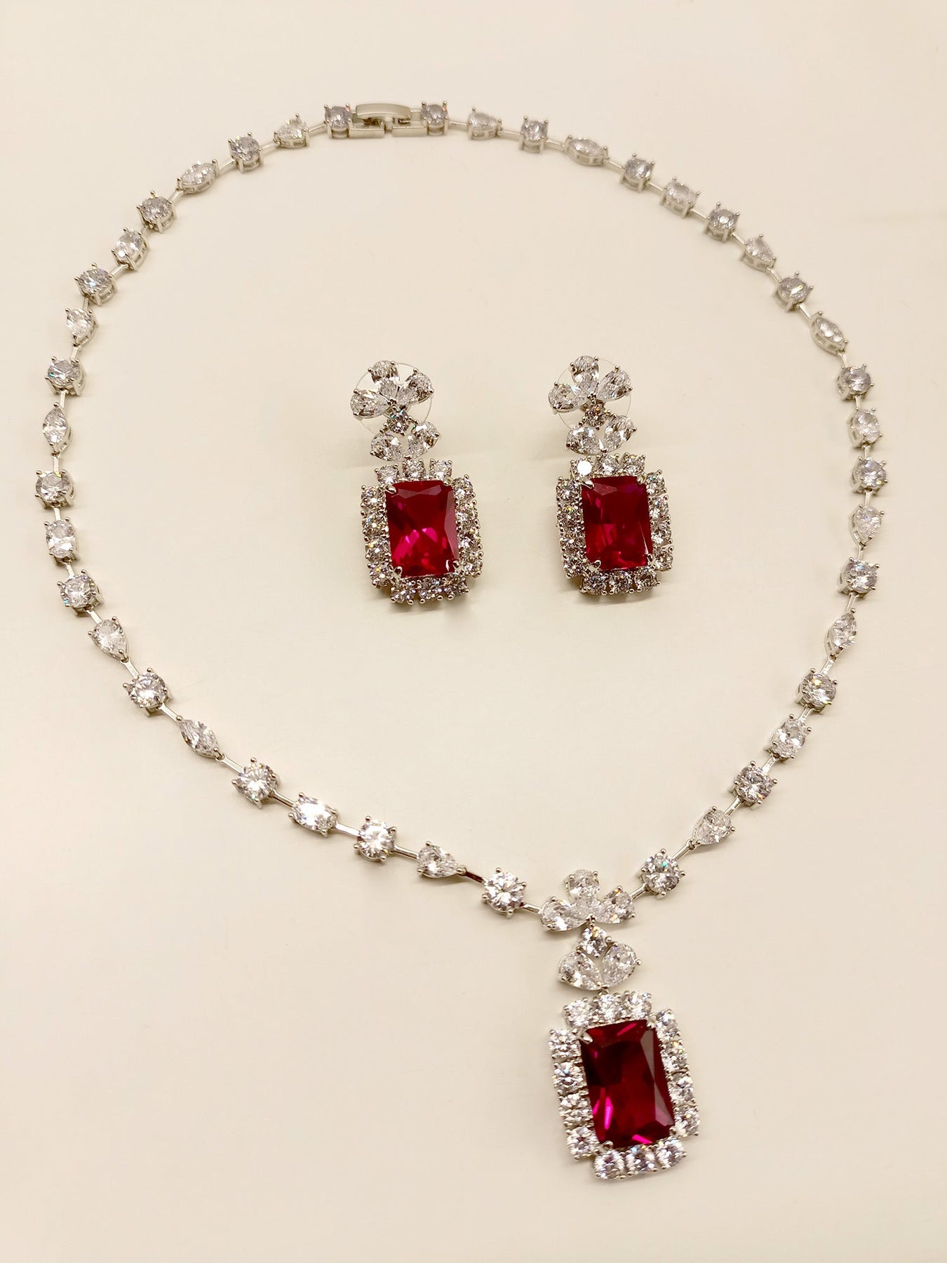 Discover the exquisite allure of the Iksha Majenta American Diamond Set, a statement piece that redefines elegance in jewelry fashion. With its sophisticated blend of silver-plated brass and dazzling magenta and American diamond stones, this set is designed to captivate and inspire.