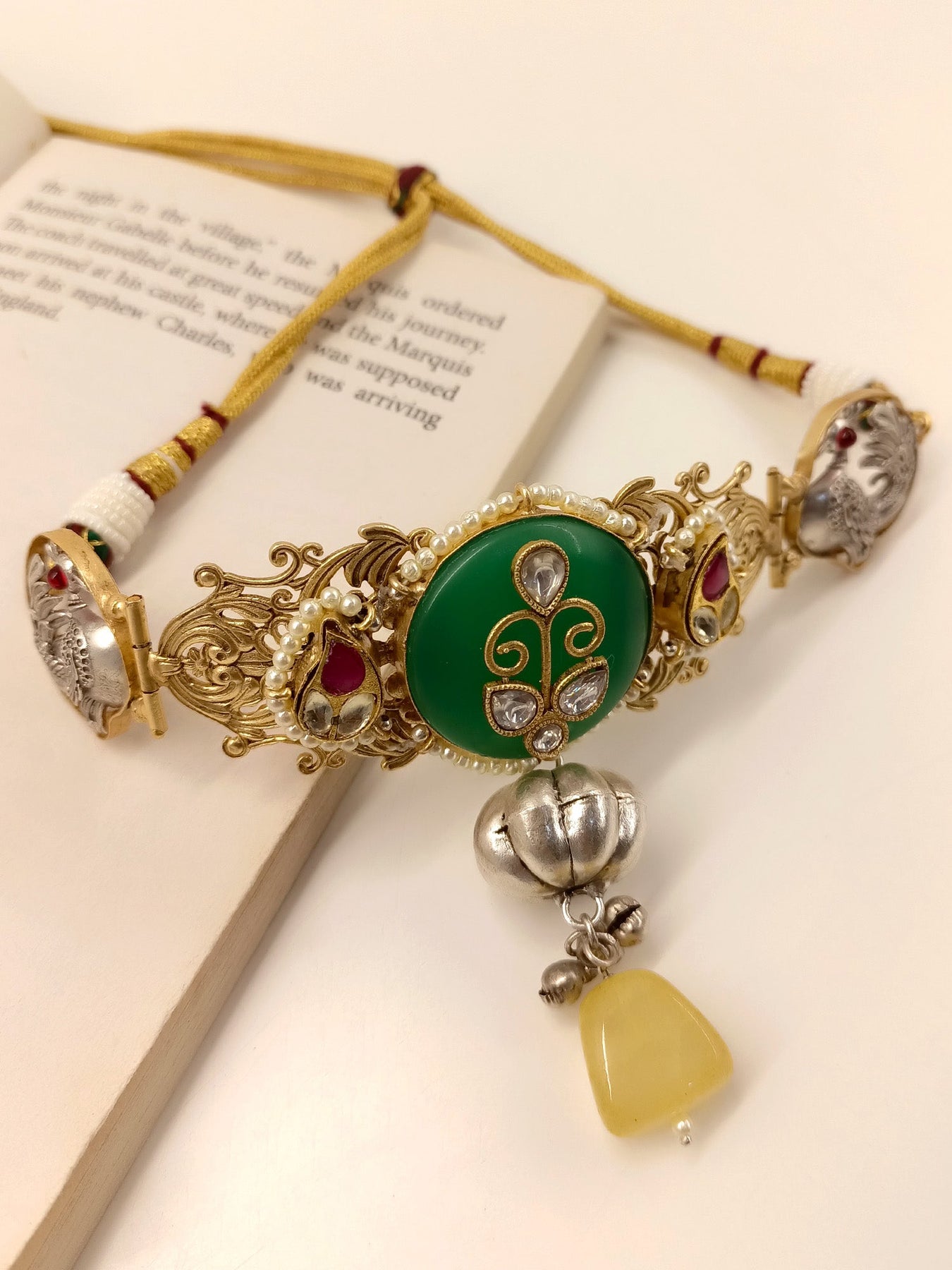 The choker's intricate peacock designs symbolize beauty and elegance, creating a captivating presence that boosts your confidence. Whether you're attending a wedding or celebrating a festival, this choker enhances your outfit, making you feel extraordinary.