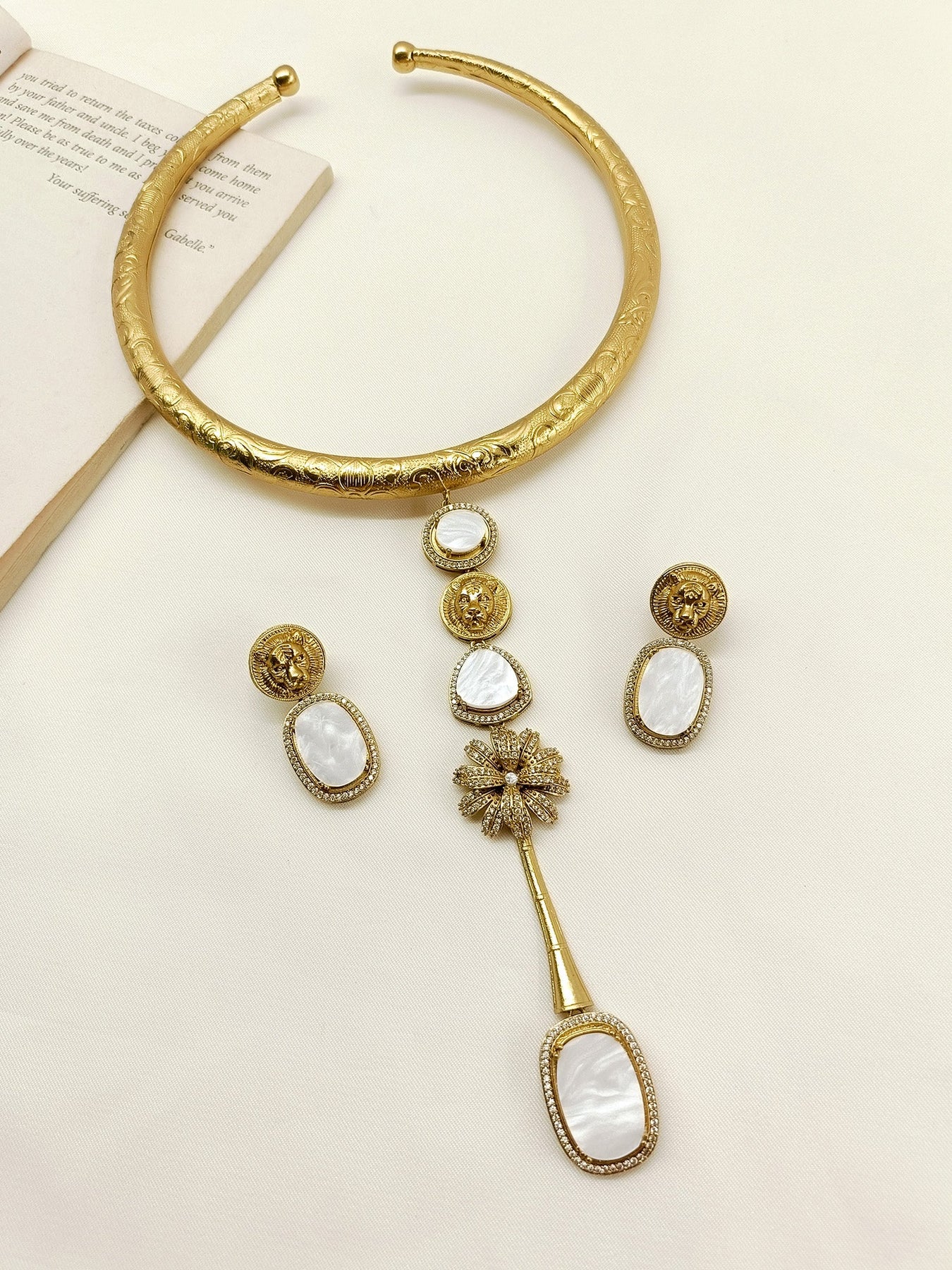 Introducing Our Hasli Style Boutique Set, Crafted With Stunning Gold Plated Brass Metal. This Set Features A Unique Hasli Style Design, Adding A Touch Of Elegance To Any Outfit. Elevate Your Style With This Versatile And Timeless Piece.