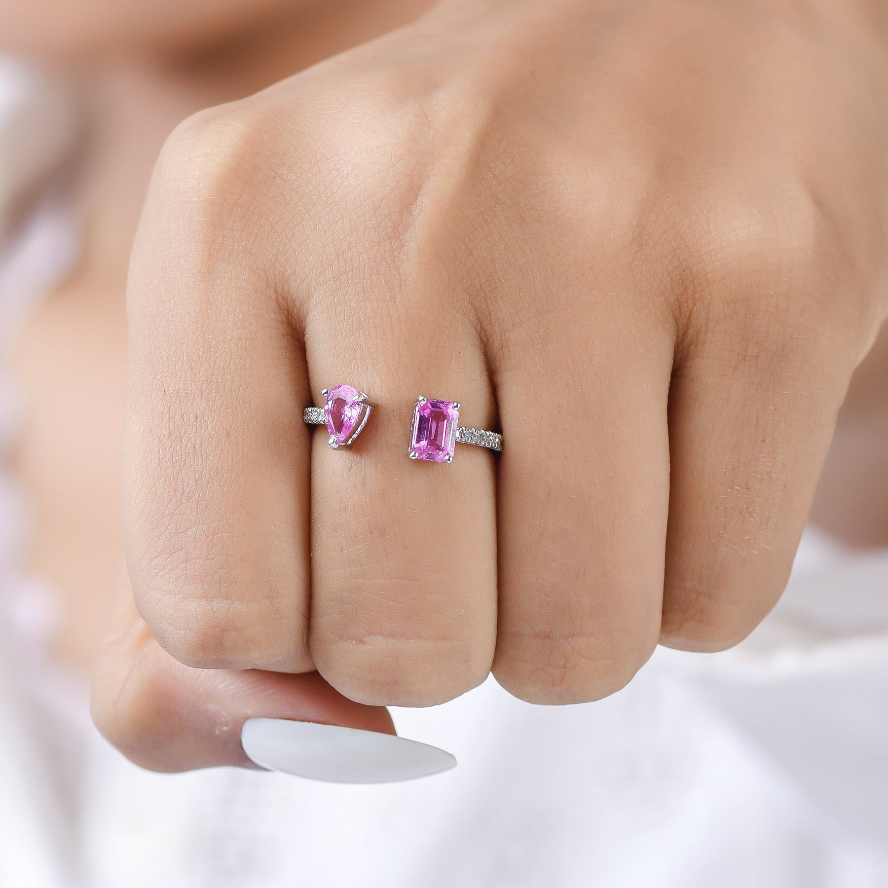 Pink Sapphire Octagon and Pear Open Ring - qivii