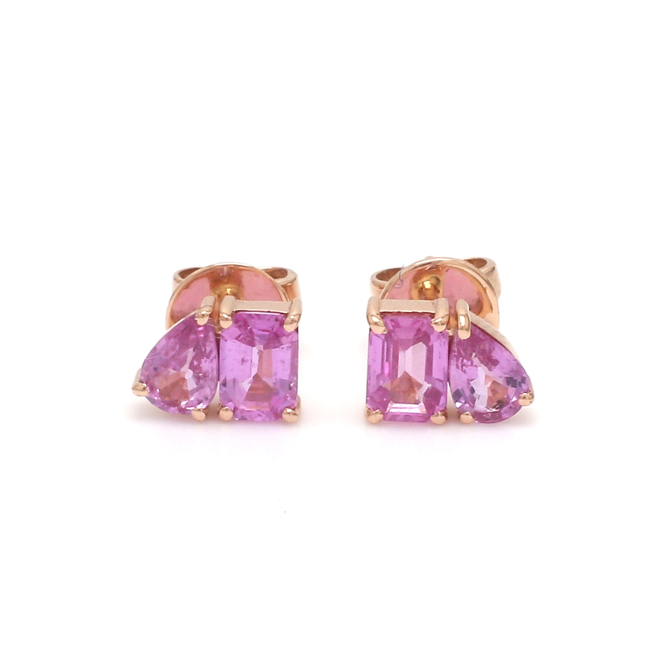 Pink Sapphire Octagon And Pear Two Stone Studs Earring