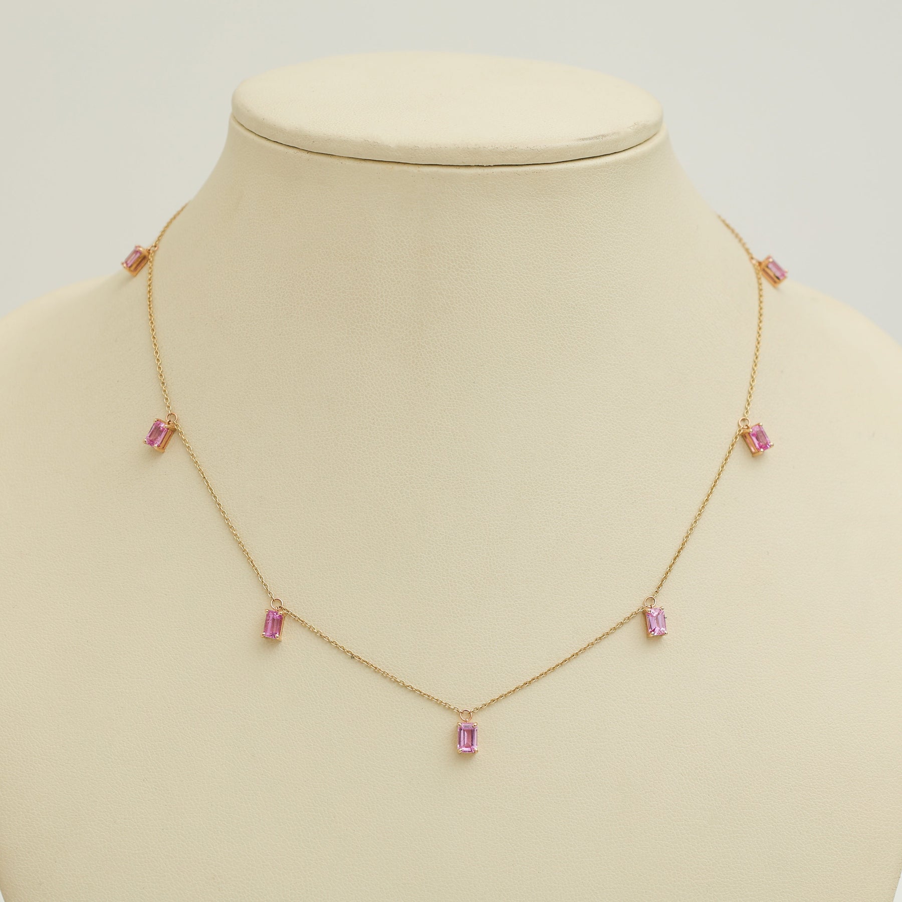 Pink Sapphire Emerald Cut Chain Necklace