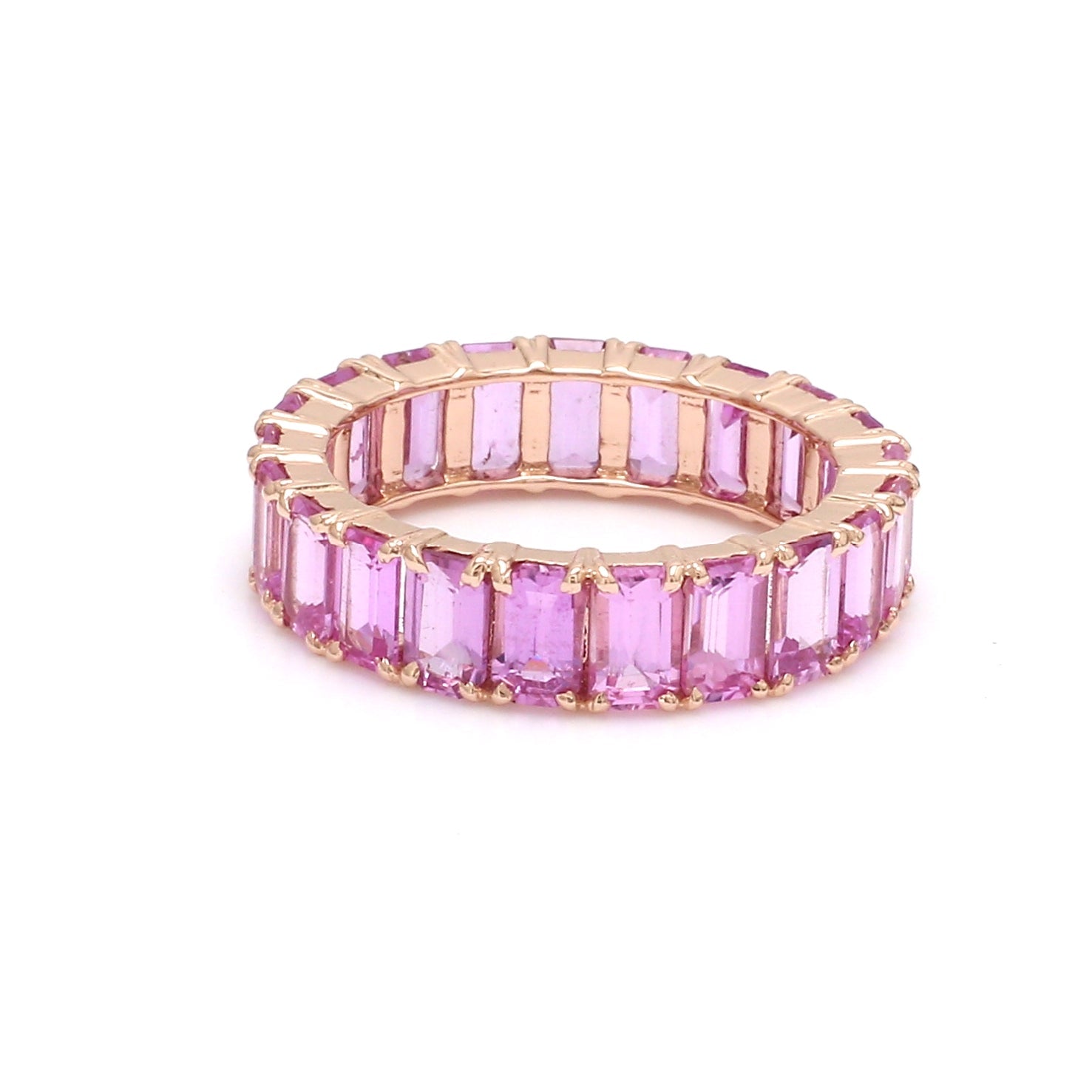 Pink Sapphire Emerald Cut Eternity Ring - qivii