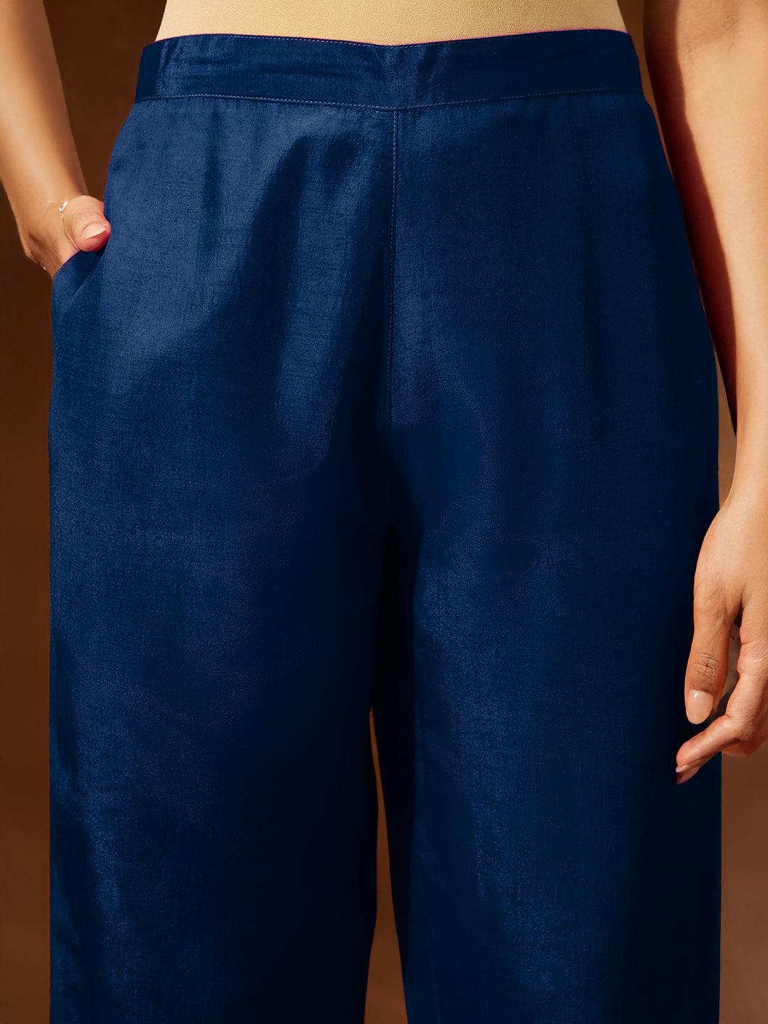 • Make a graceful festive impression with this teal silk blend embroidered straight kurta set from Janasya. The straight kurta features a stylish v-slit round neckline and is adorned with delicate thread and zari embroidery with sequin highlights all over the front panel, adding a touch of shimmer and elegance. The three-quarter sleeves are elevated with intricate embroidery on the organza patch at the sleeve hem, giving the ensemble a rich, celebratory flair. Lined with soft crepe for added comfort, the kurta is paired with solid teal straight pants made in silk blend fabric, featuring a semi-elasticated waistband for a tailored yet comfortable fit and practical side pocket. The look is completed with a matching teal organza dupatta featuring gota patti detailing along the borders for a refined finish. Style this ensemble with traditional chandbali earrings, a statement ring, embellished juttis, and a sleek clutch to complete the perfect ethnic look.