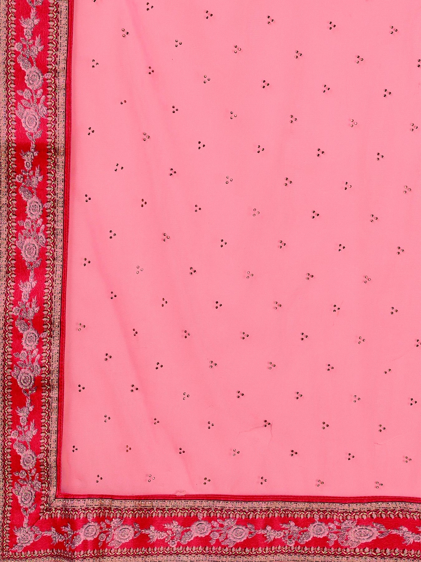 The highlight of this ensemble is the heavy Swarovski work that adds a dazzling sparkle, elevating its allure. Each shimmering crystal meticulously placed, enhancing the overall opulence of the attire.
