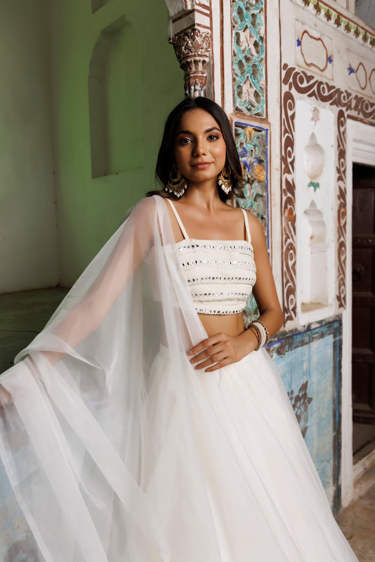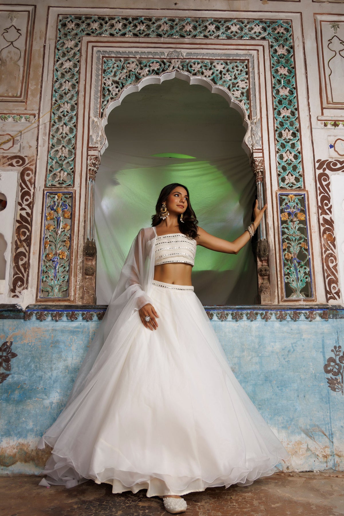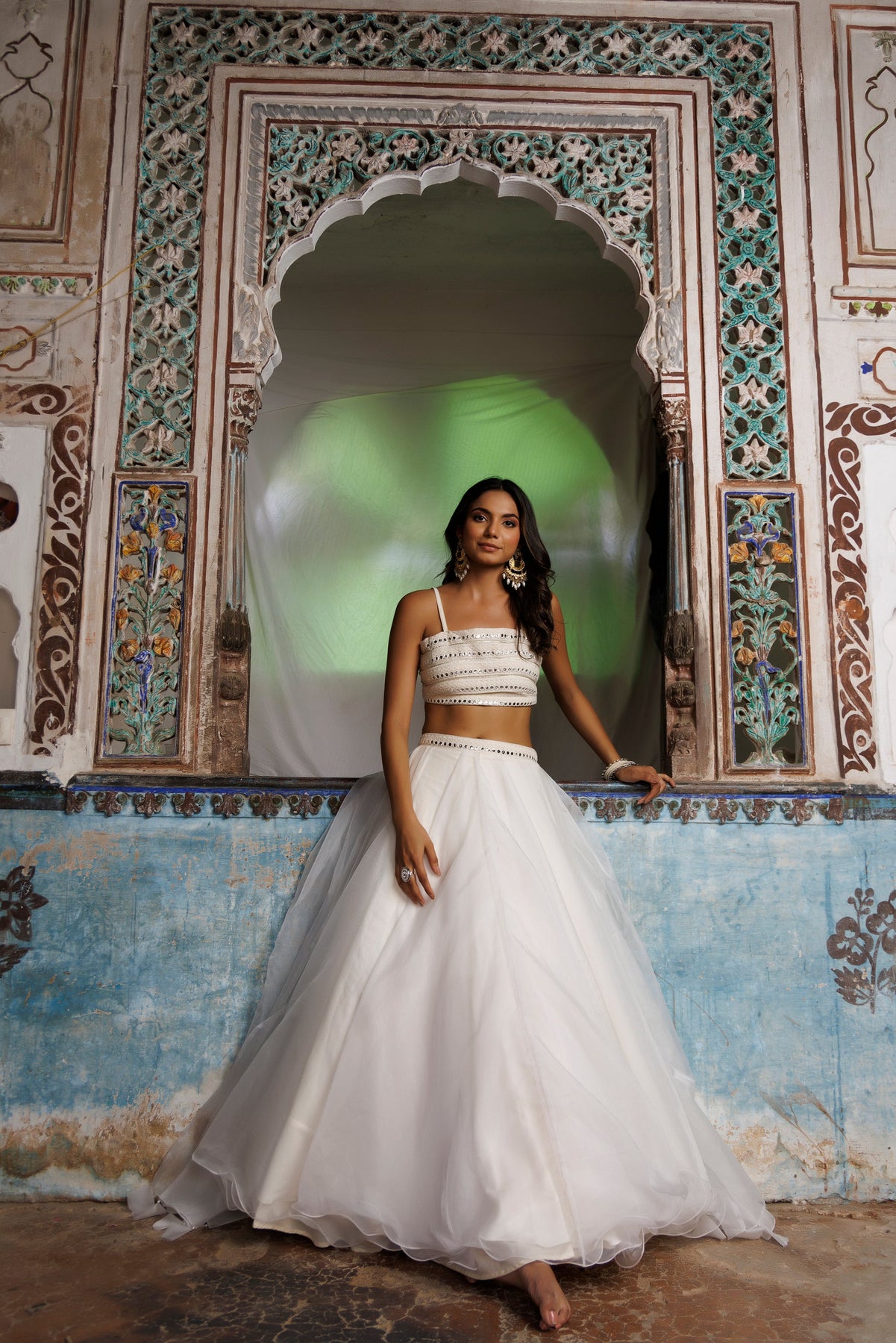 Introducing our Ethreal White Lehenga Set, a timeless combination of style and tradition. This beautiful ensemble consists of an off-white embroidered cotton blouse that highlights your elegance and a matching off-white organza skirt that adds grace to your movements. The set is completed with a delicate off-white organza dupatta, enhancing the overall charm. Perfect for festive occasions, weddings, or special gatherings, this outfit embodies sophistication. Experience the rich blend of quality and ethnicity in our Ethreal White Lehenga Set today!