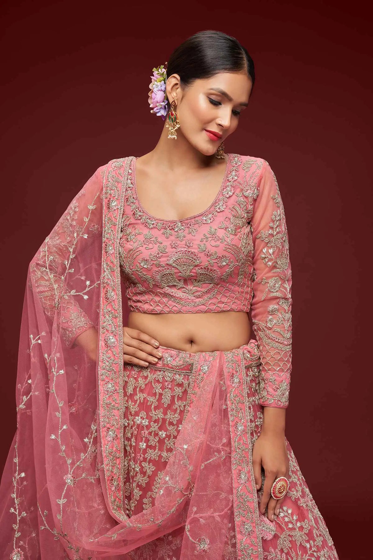Fantasy Rose Soft Net Lehenga With Thread Zari Badla And Glitter Dori Embroidery Work | Ready To Wear