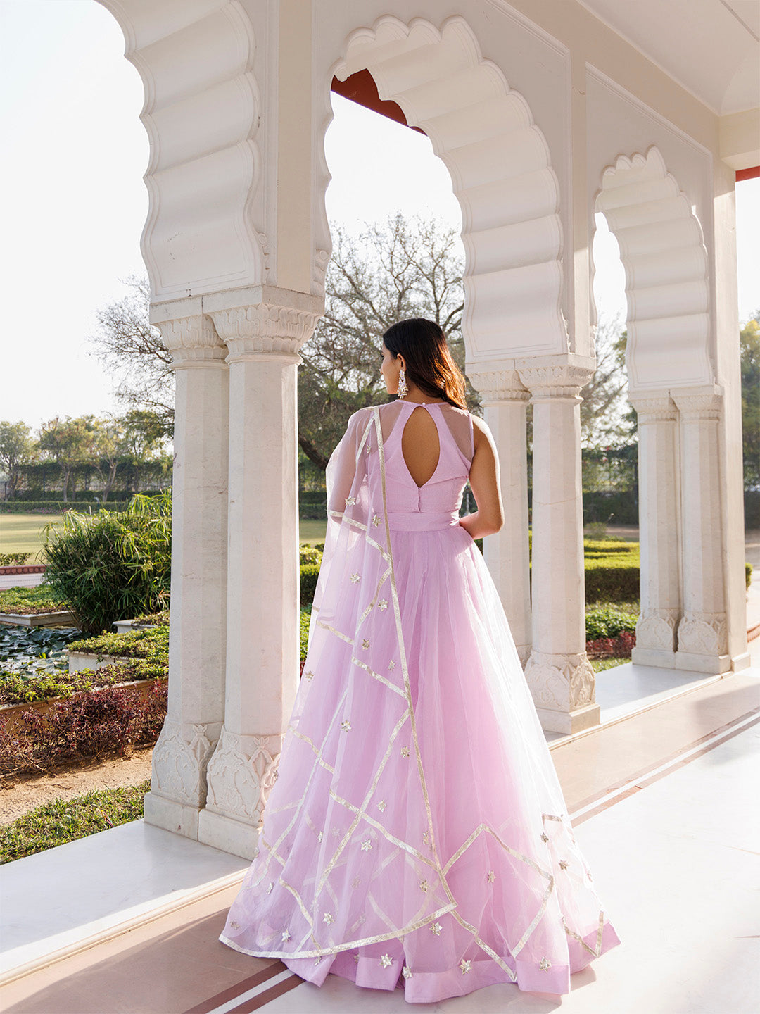 Discover the allure of our lavender organza lehenga and choli ensemble, complete with a matching dupatta. Crafted meticulously, the sleeveless choli boasts a round neckline and exquisite gota work embellishments. Ideal for celebratory events and soirées, this ensemble exudes sophistication and charm with its delicate hue and intricate detailing. Elevate your style quotient and make a lasting impression with this captivating attire, perfect for embracing festivities with grace and elegance. The model is wearing a cancan during the shoot. It can be purchase separately.