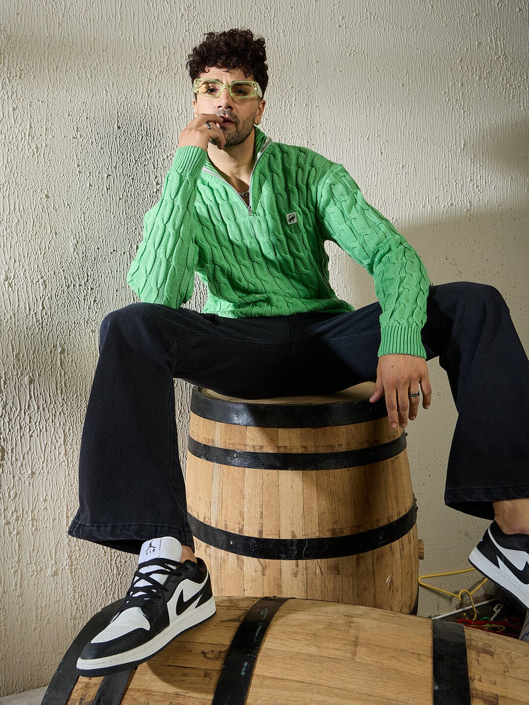 The ribbed neckline and cuffs add a touch of distressed texture, while the turtle neck and quarter zip closure provide versatile styling options. Complete with full sleeves for warmth and comfort.