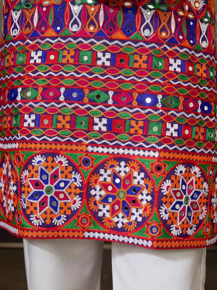 Purple Multi Thread And Real Mirror Work Kurta Set For Navratri - qivii