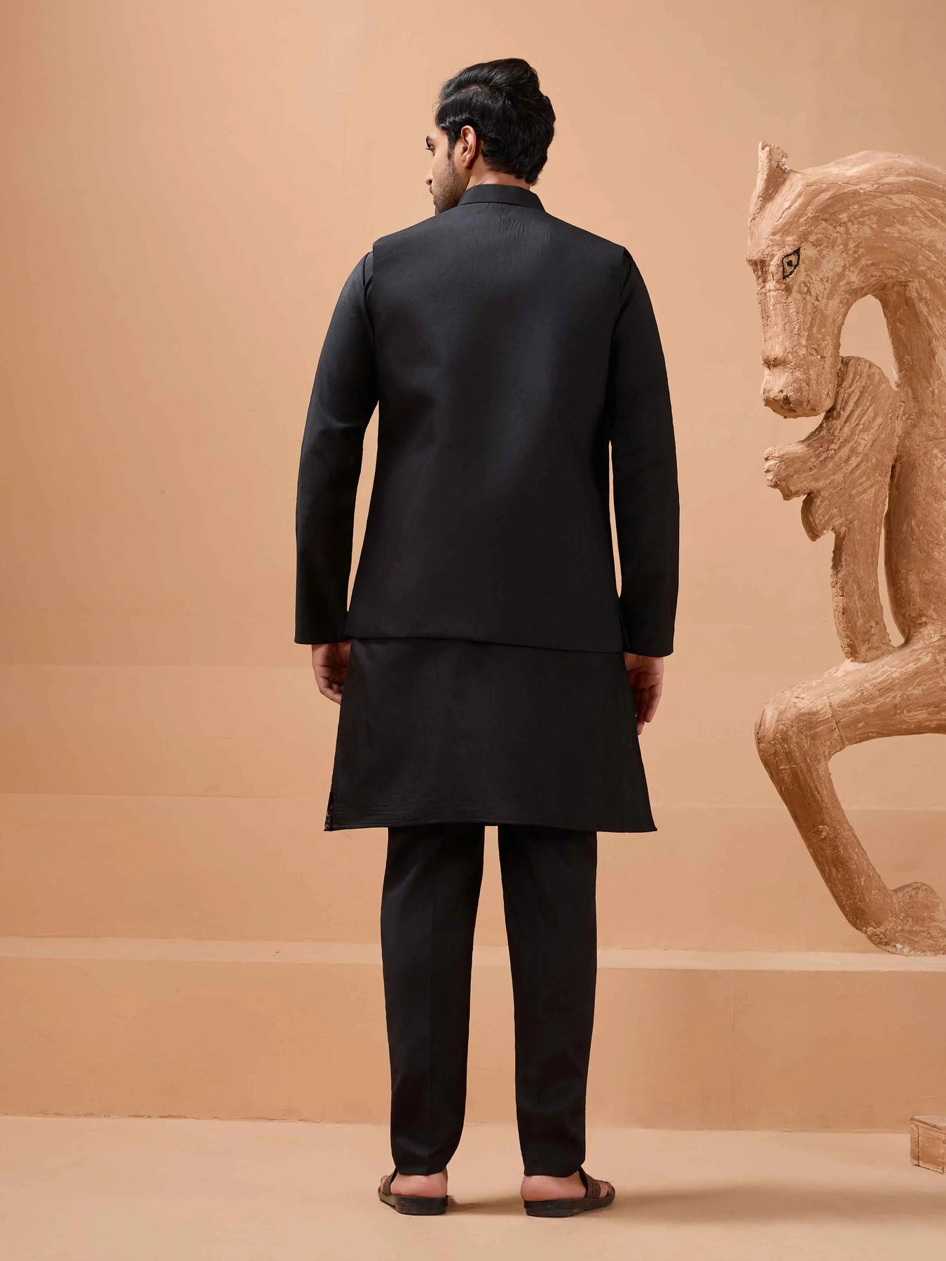 Stylish Black Kurta Set With Sequins Embroidery Jacket