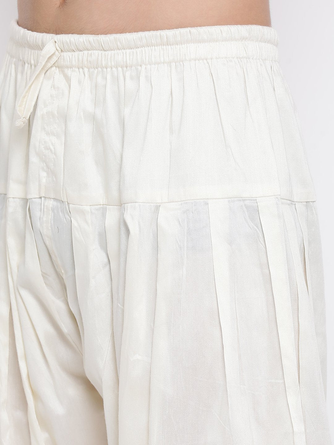 Off white solid patiala, has elasticated waistband and drawstring closure