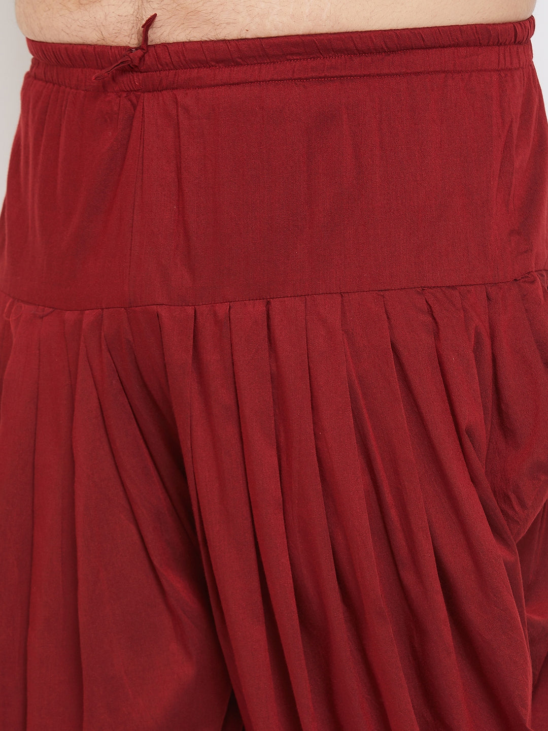 Maroon solid dhoti pant, has elasticated waistband and drawstring closure