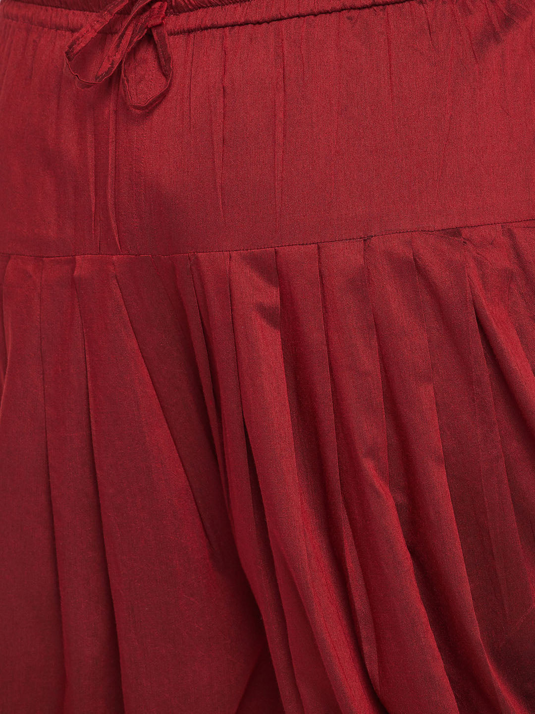 Maroon solid dhoti pant, has elasticated waistband and drawstring closure