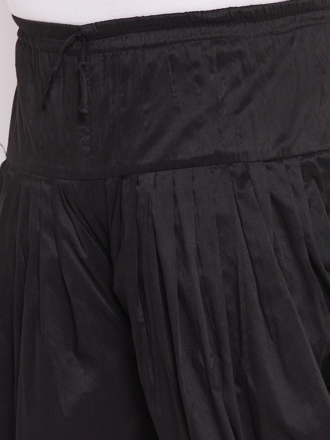 Black solid dhoti pant, has elasticated waistband and drawstring closure