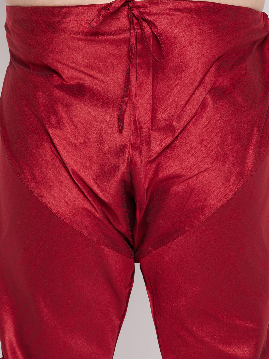 Men's Plus Size Pink Woven Kurta And Maroon Pyjama Set