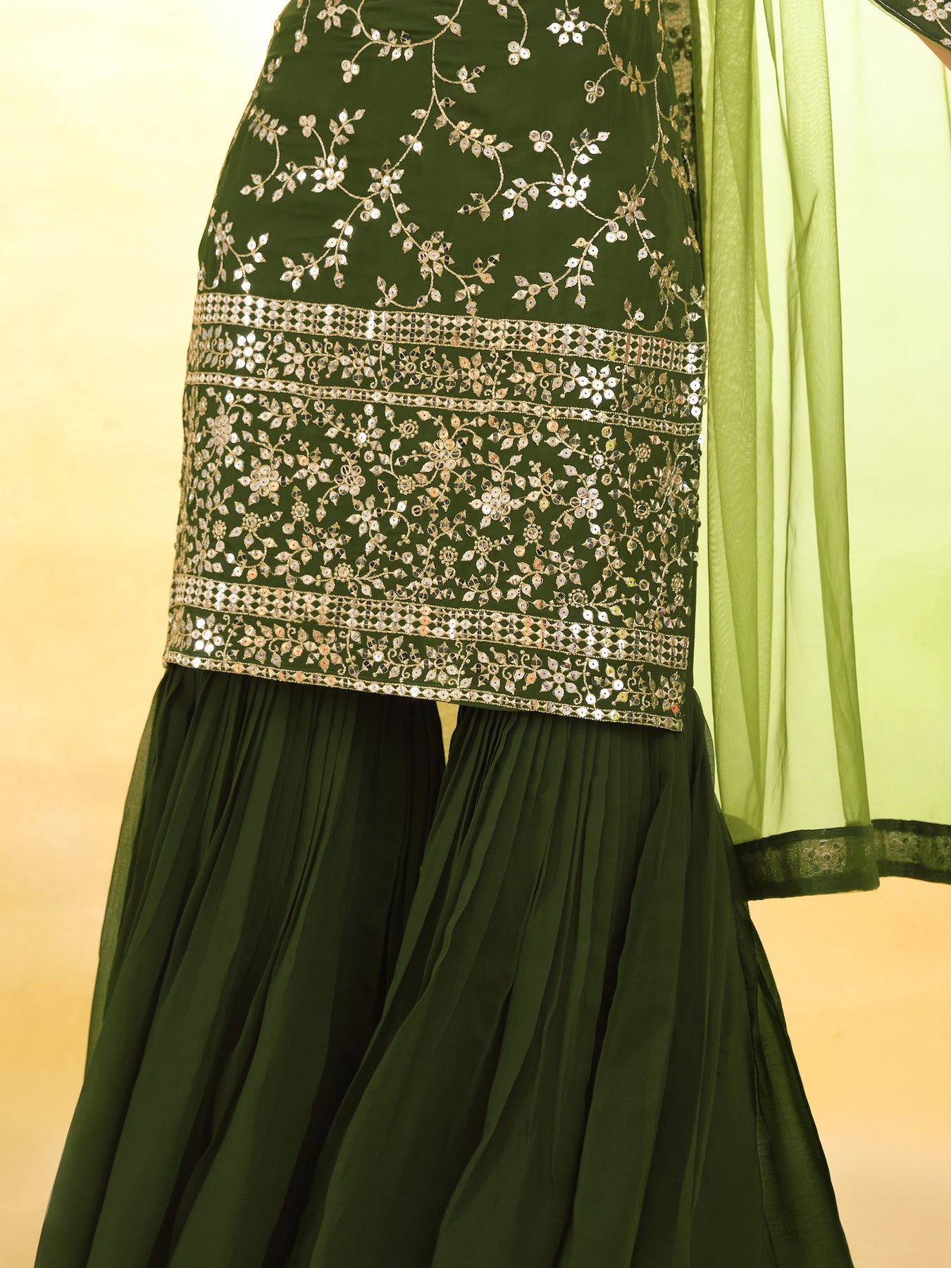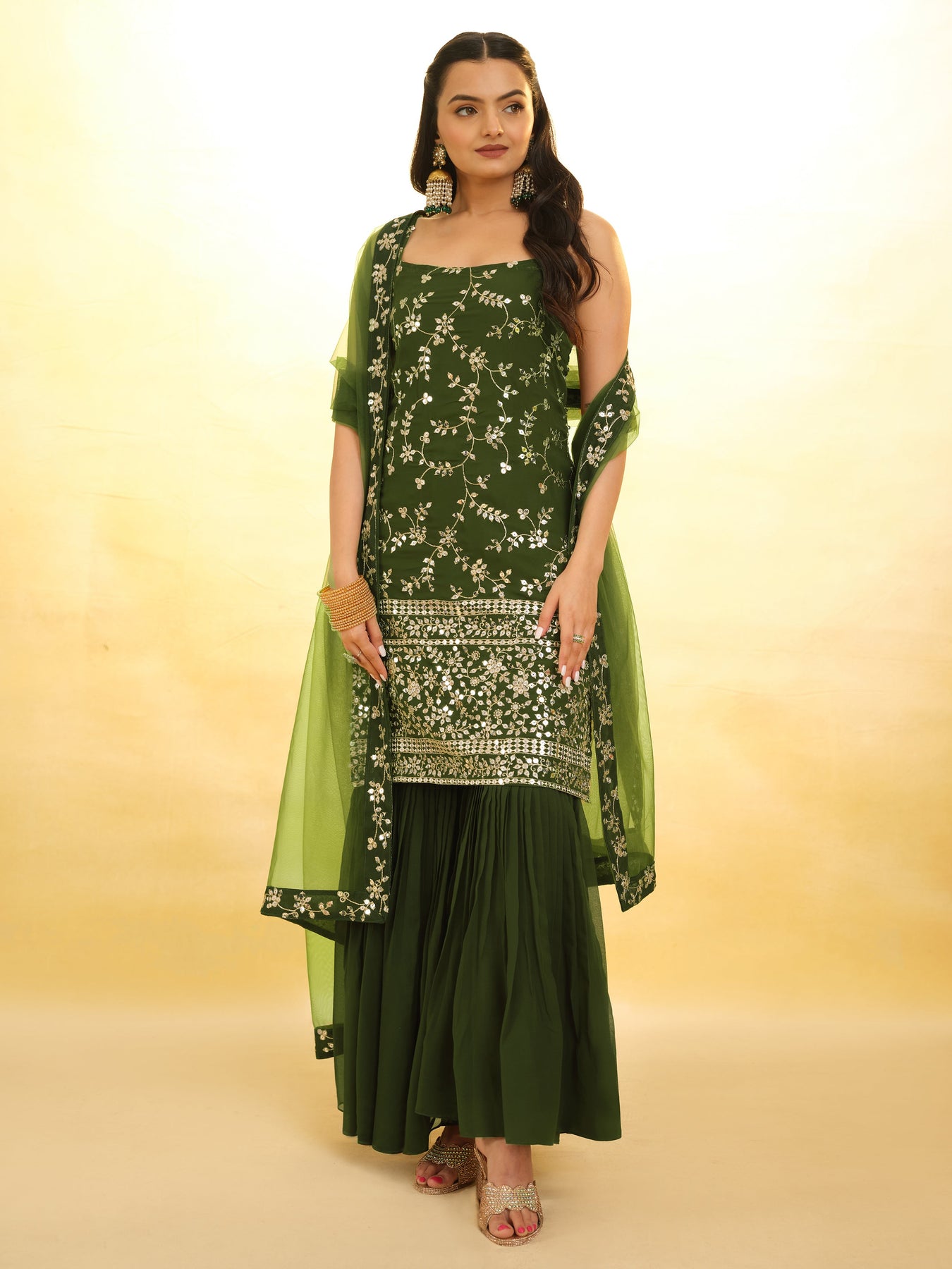 Green Georgette Sharara Suit with Flowing Matching Sharara