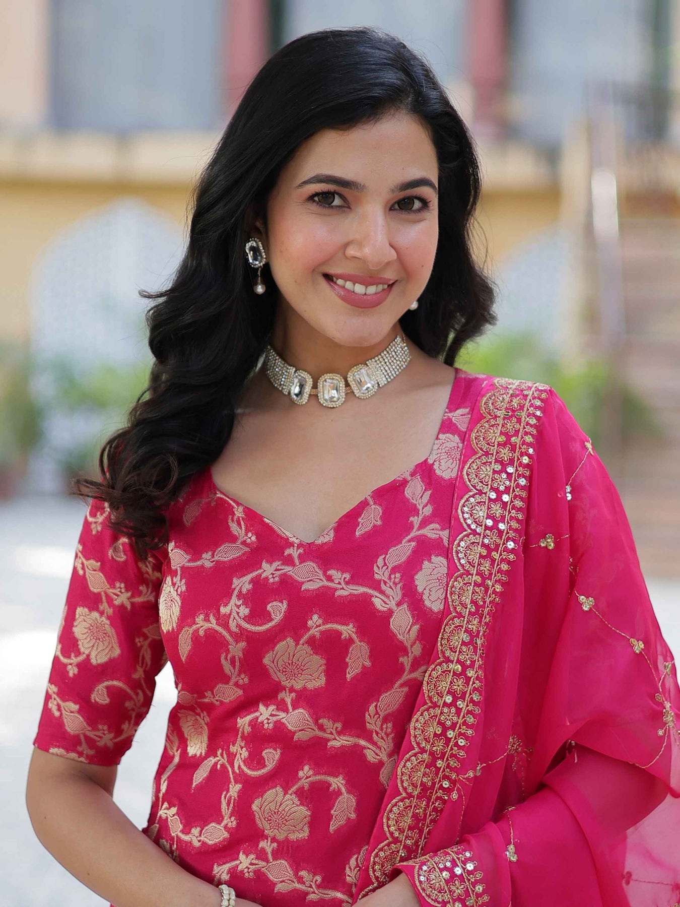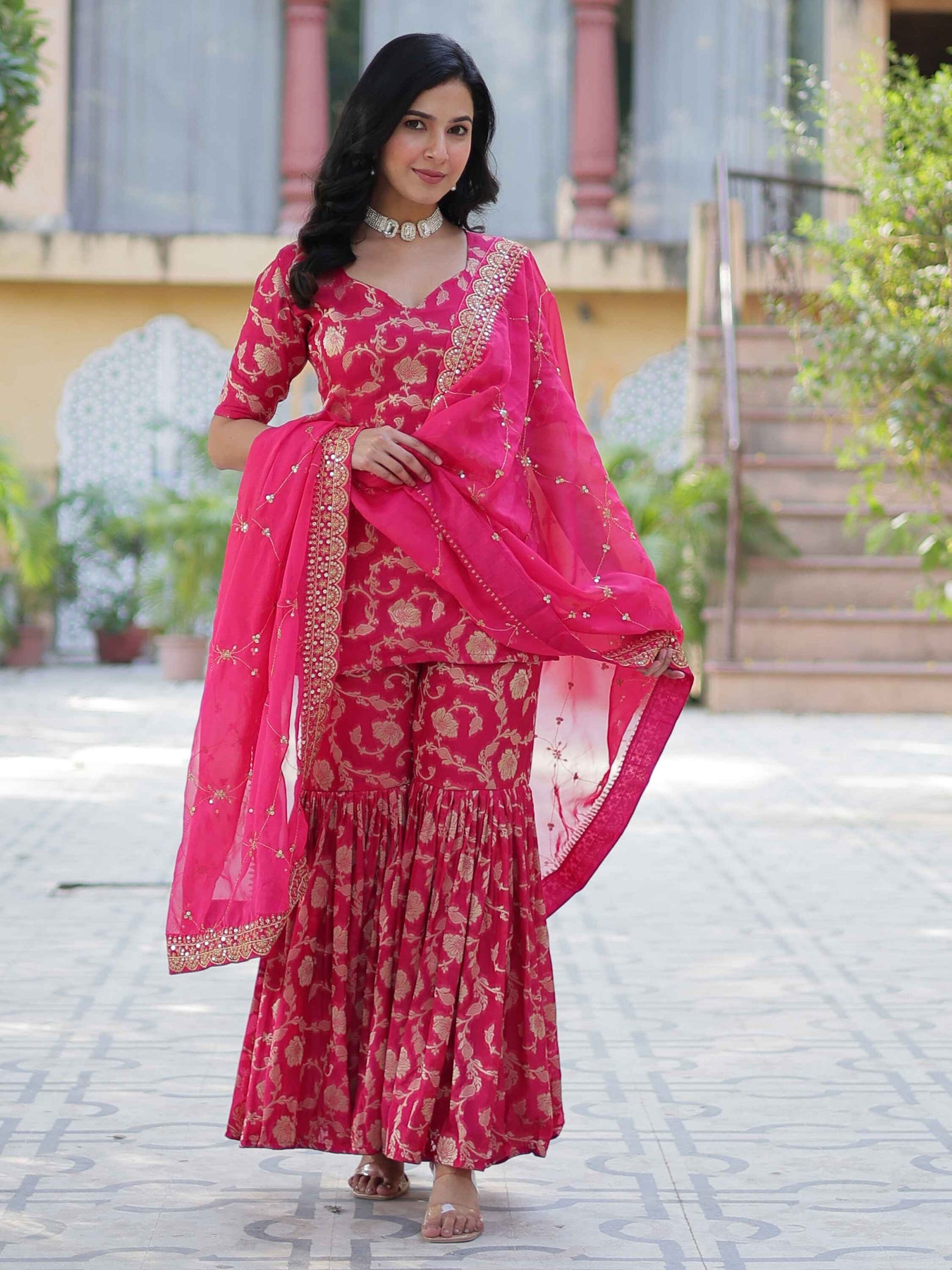 Incredible Pink Weaving Jacquard Festival Wear Sharara Suit