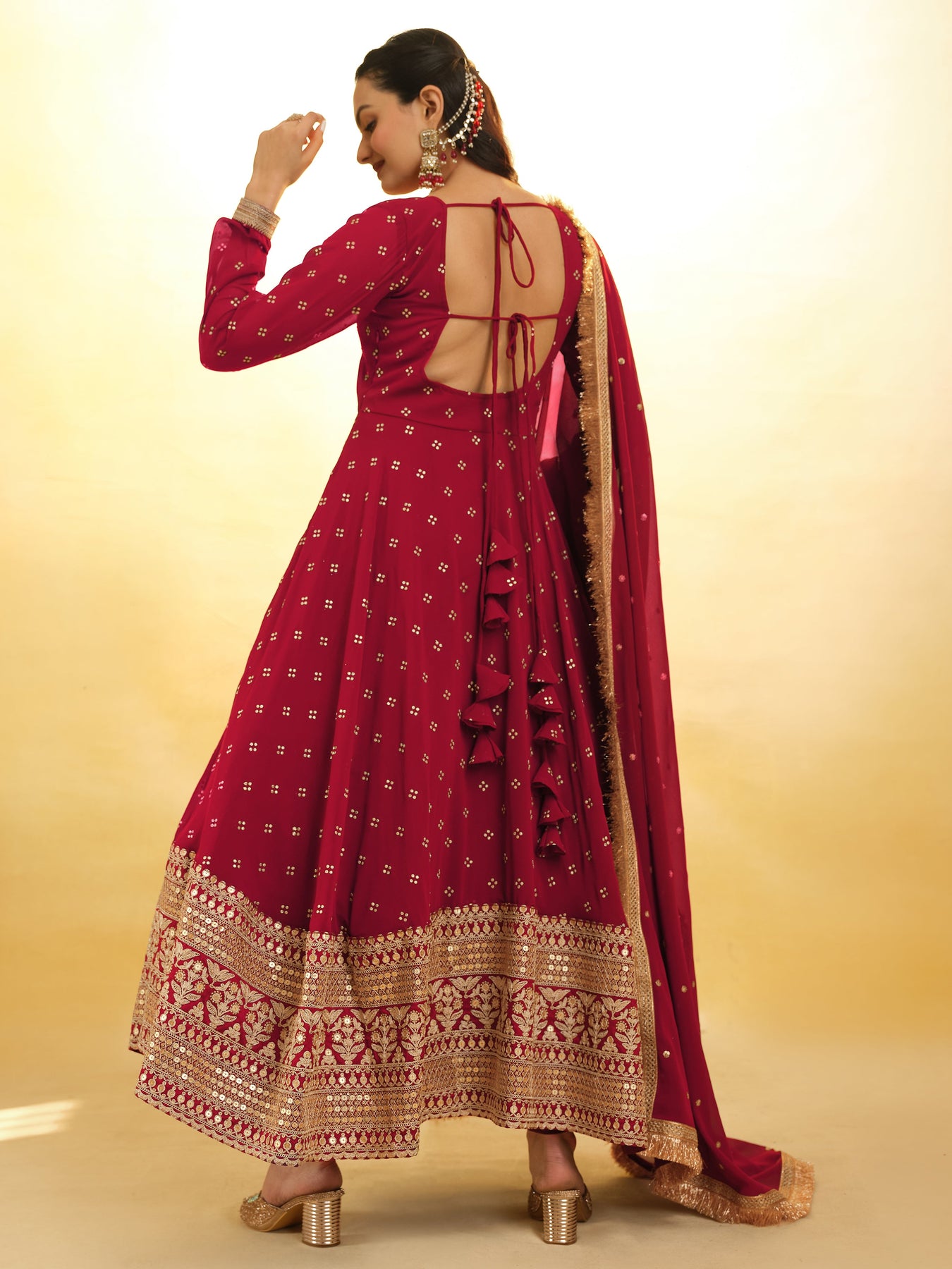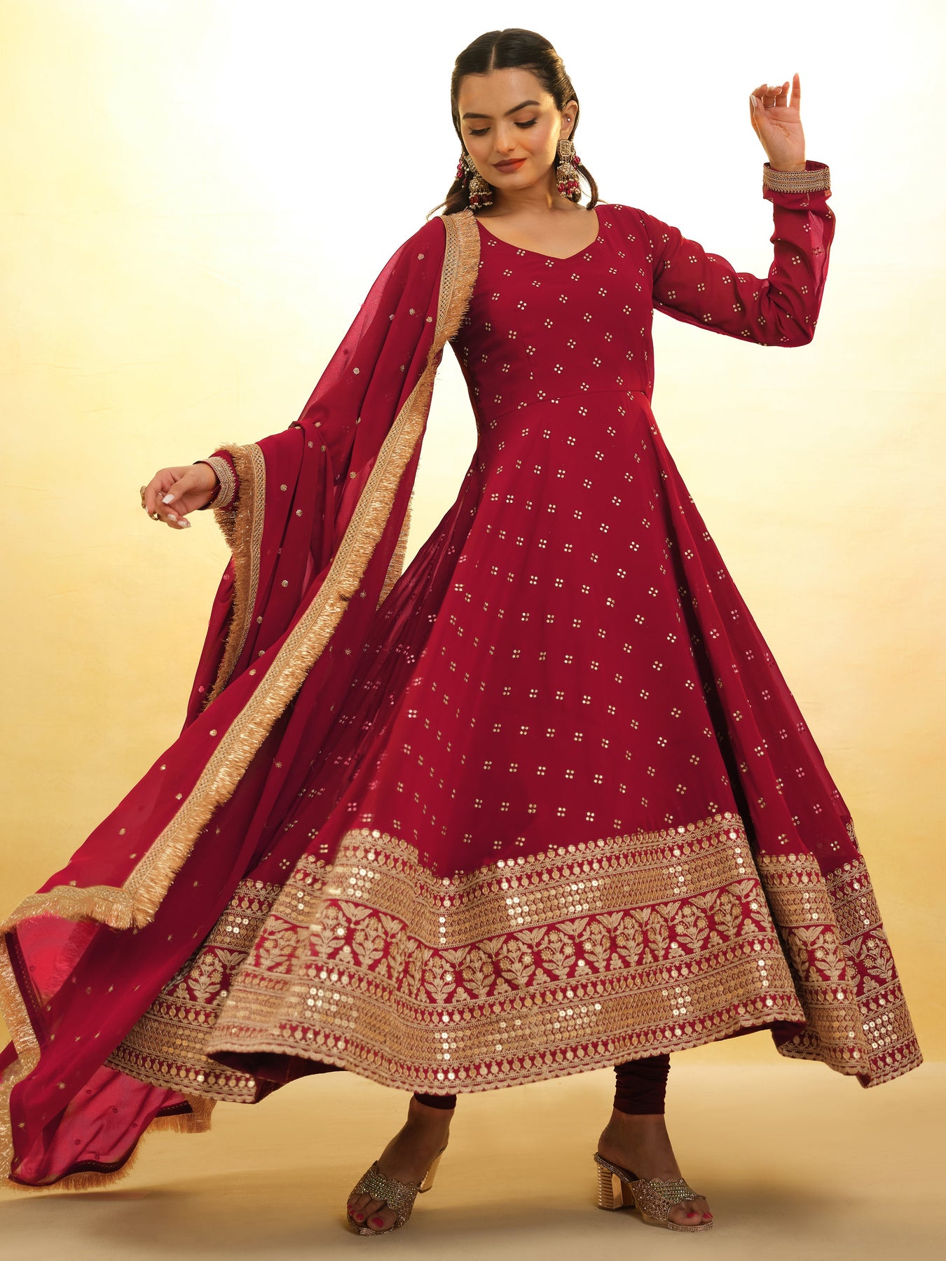 Magnetic Red Embroidered Georgette Wedding Wear Salwar Suit