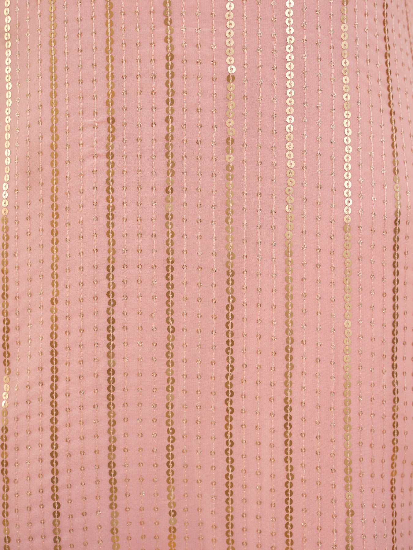 • Embrace timeless elegance with this charming baby pink georgette suit, designed to captivate with its delicate sequin work.