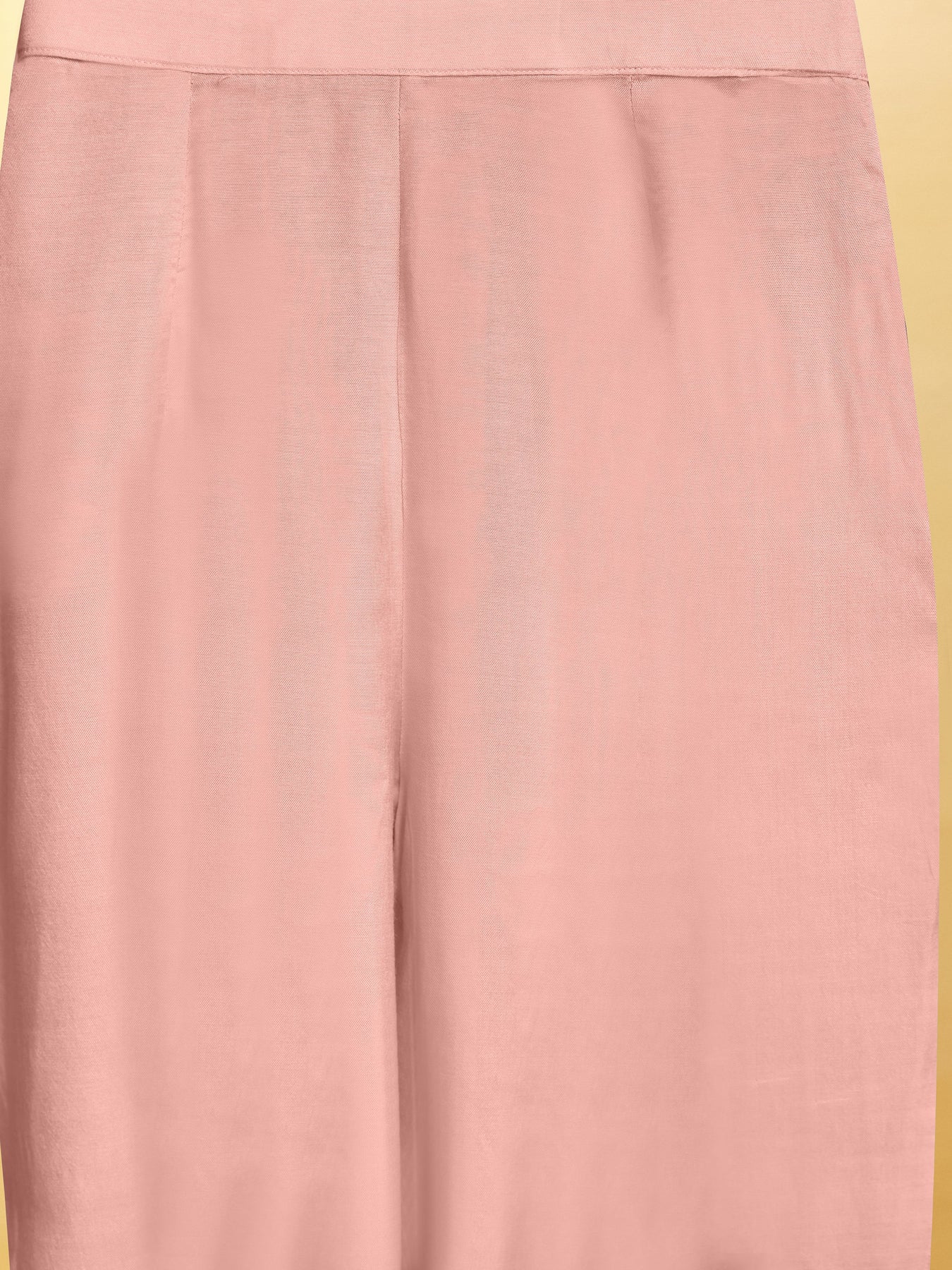 • The ensemble includes matching georgette palazzo pants and a coordinating dupatta, each featuring the same soft pink hue and exquisite detailing.