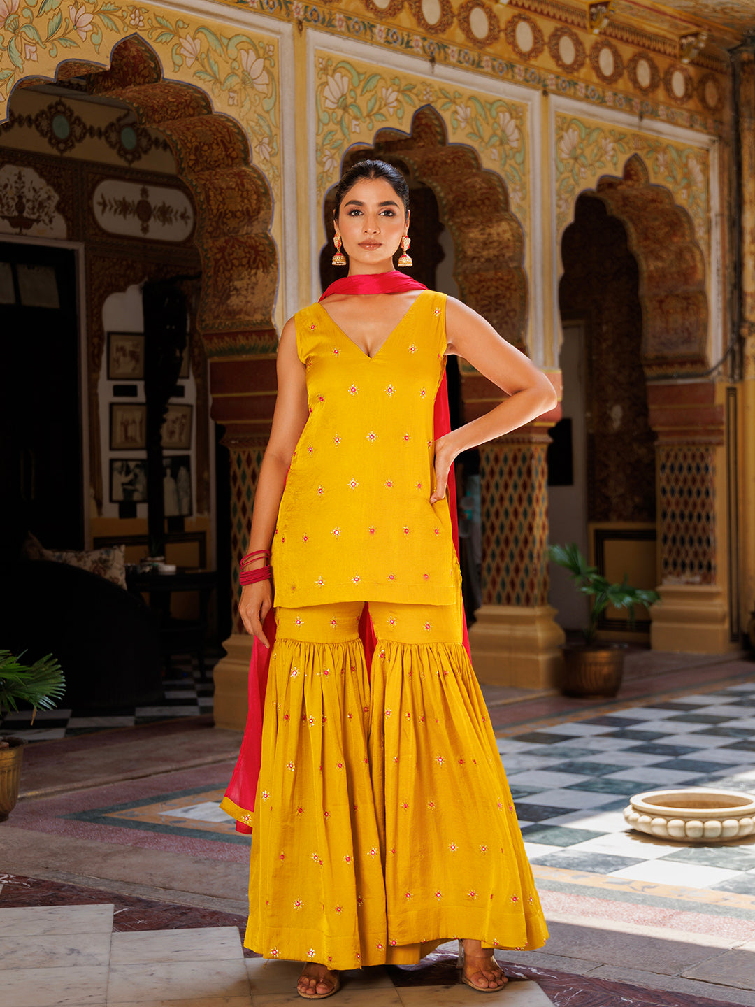 Bumblebee Yellow Pink Embroidered Sharara Set