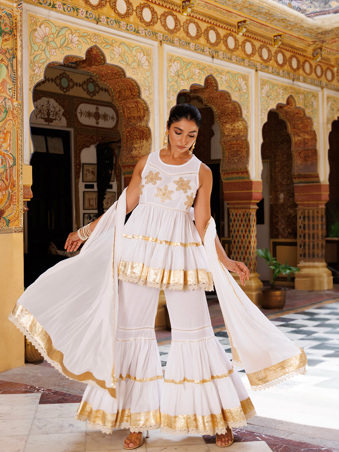 Cannoli Cream White Cotton Gotawork Sharara Set
