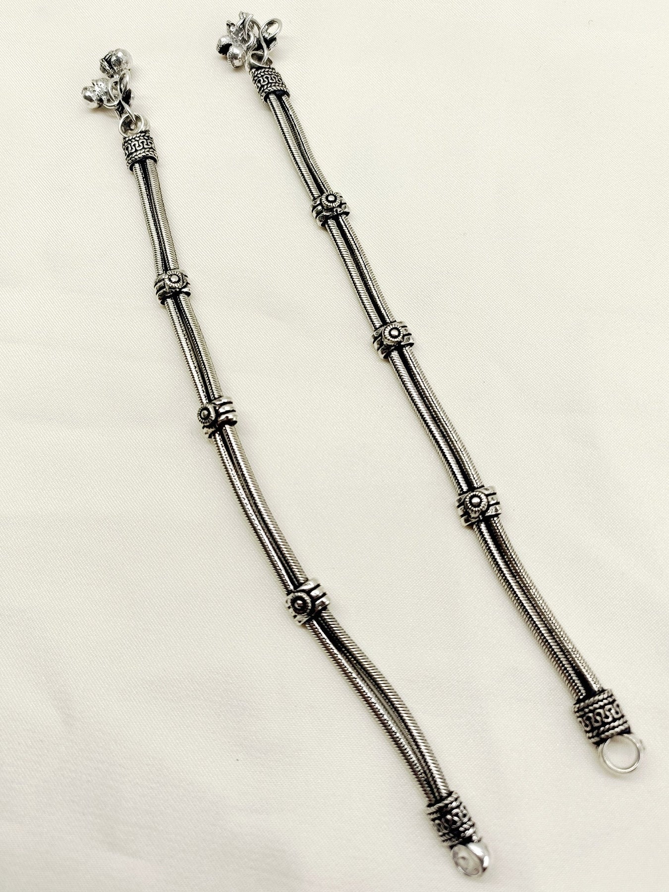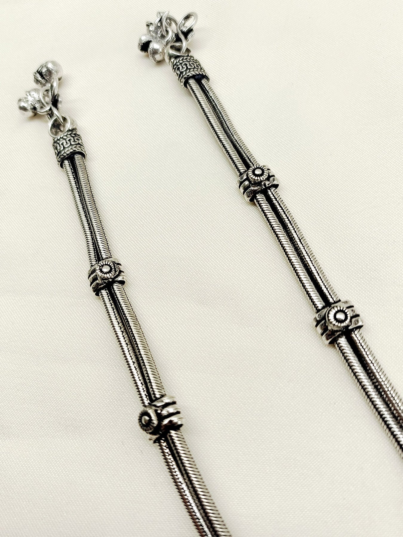 This Elegant Oxidized Silver Anklet Features Traditional Oxidized Detailing, Silver Plated Brass Metal And Double Layerd Chain, Showcasing Superior Craftsmanship And High-quality Materials, This Beautiful Anklet Will Make A Lasting Impression.