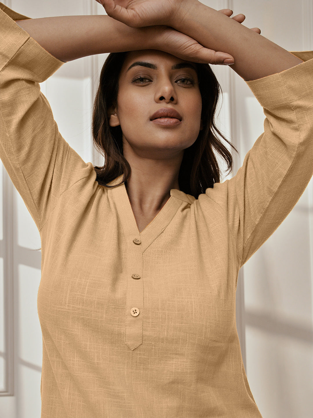 This Chiku Cotton Linen Yoga Kurta from Vastramay combines earthy elegance with functional design. The breathable fabric and thoughtful features make it perfect for yoga practice while offering versatile style for everyday wear.